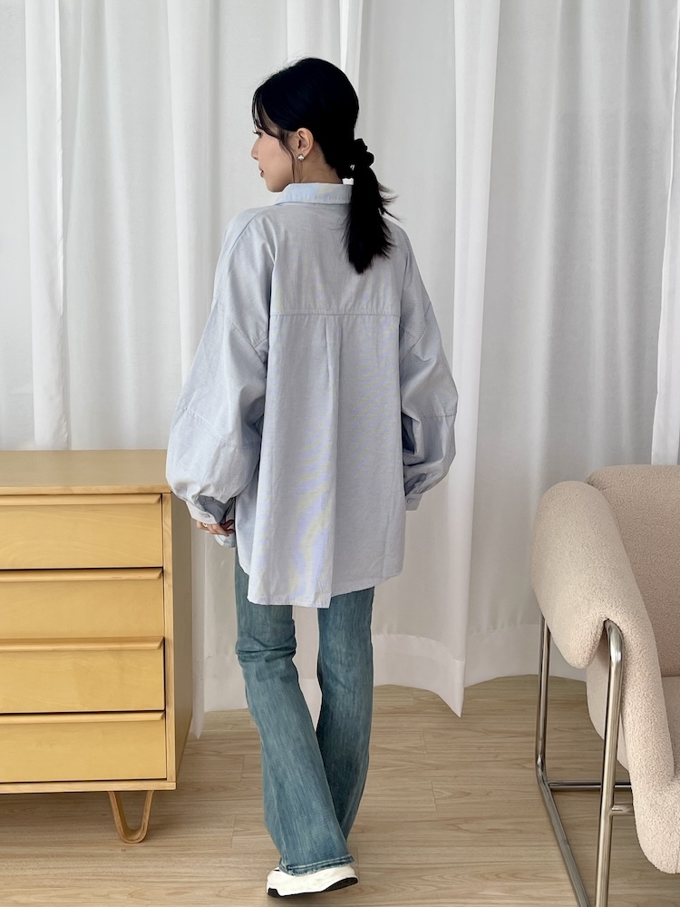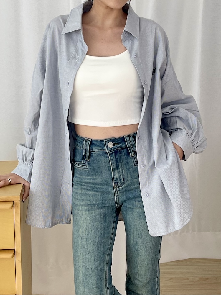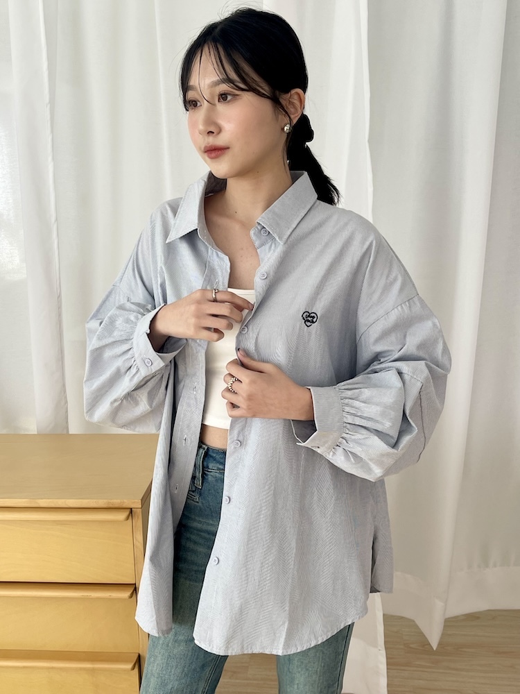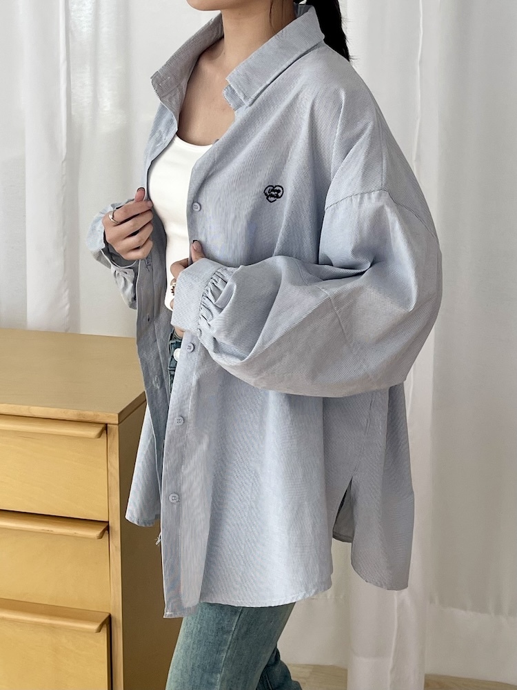 愛心刺繡直條襯衫