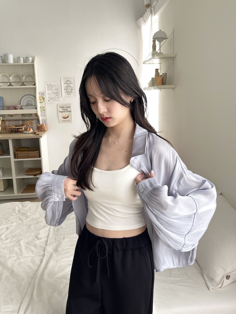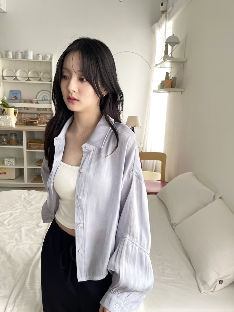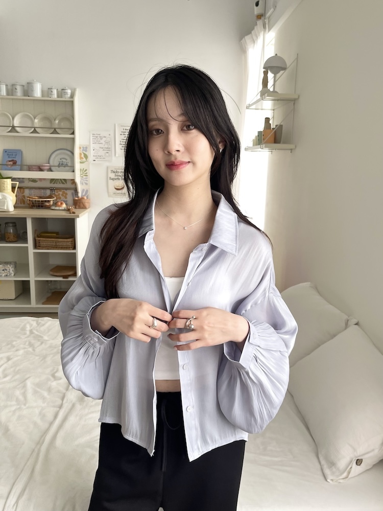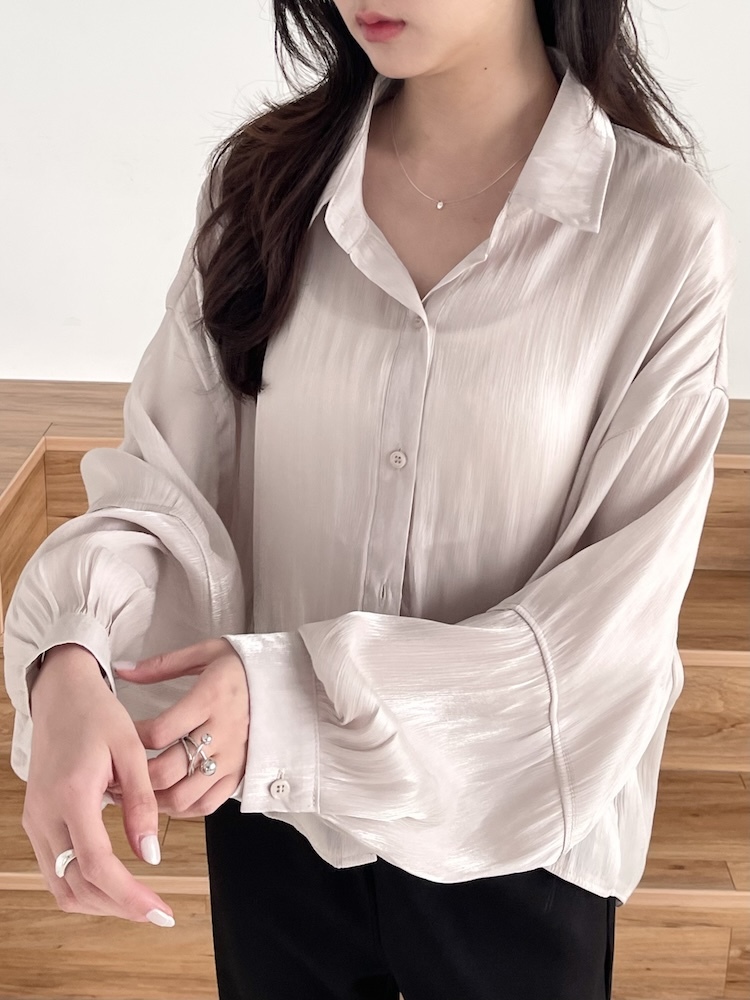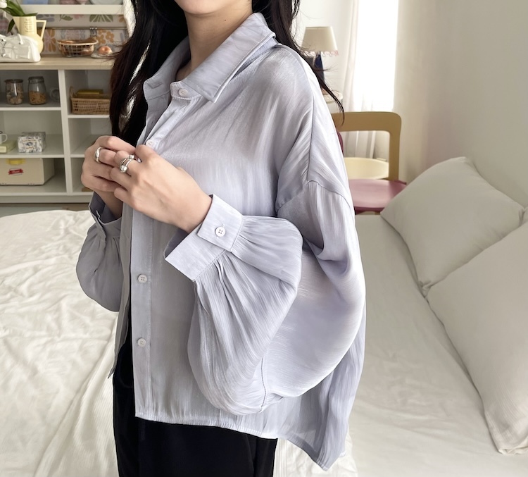 高級感光澤澎袖襯衫